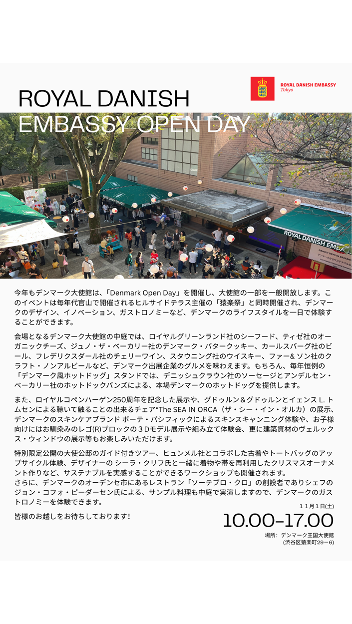 デンマーク大使館:「Denmark Open Day 2025(デンマーク・オープン・デー2025)」